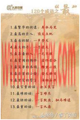 为最的成语2020-08-01 18:42:48 阅读 13 次 评论 0 条摘要:本篇成语大全给大家提供的是为最的成语,这篇内容中收录了较多的为最的成语,部分成语有拼音和释义,为最的成语都摘录于成语字典,希望这些为最的成语能够帮助到您。为善最乐[wéi shàn zuì lè] ,释义:做善事是最快乐的事。常用为劝人多行善事的格言。本文地址:https://www.suduxx.com/cyztym/cyzt9OhwtBJq.html版权声明:本文收录于网络,如有侵权请E-mail联系 www.suduxx.com 站长!点赞 1分享:PREVIOUS:目所的成语NEXT:鸢跃的成语文章导航