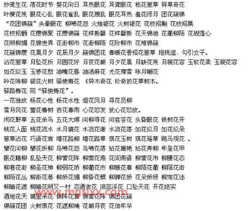 和花有关的成语大全2020-09-06 11:57:32 阅读 7 次 评论 0 条摘要:本篇成语大全给大家提供的是和花有关的成语大全,这篇内容中收录了较多的和花有关的成语大全,部分成语有拼音和释义,和花有关的成语大全都摘录于成语字典,希望这些和花有关的成语大全能够帮助到您。马上看花[mǎ shàng kàn huā] ,释义:指粗略行事,走马看花。枯树开花[kū shù kāi huā] ,释义:已经枯死的树又开起花来。比喻绝处逢生获奇迹出现。本文地址:https://www.suduxx.com/cyztym/cyztEsyo8YLE.html版权声明:本文收录于网络,如有侵权请E-mail联系 www.suduxx.com 站长!点赞 1分享:PREVIOUS:诚信的成语有哪些NEXT:冬天的成语有什么文章导航