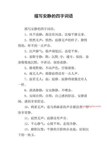 安安静静 ,释义:指没有声音,没有吵闹和喧哗。