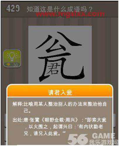 请君入瓮 ,释义:《资治通鉴·唐纪·则天皇后天授二年》记载,有人告发周兴谋反,武则天命令来俊臣审问周兴,周兴还不知道。来俊臣问周兴:“犯人不肯认罪怎么办?” 周兴说:“这个好办,拿个大瓮,周围用炭火烤,把犯人装进去,什么事他会不承认...