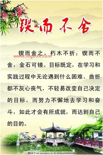 驽马十舍 ,释义:用马拉车,一天为一驾,十驾指十天路程。谓驽马奋力拉车,亦可至远。比喻能力低下的人只要奋勉从事,同样能达到目的。
