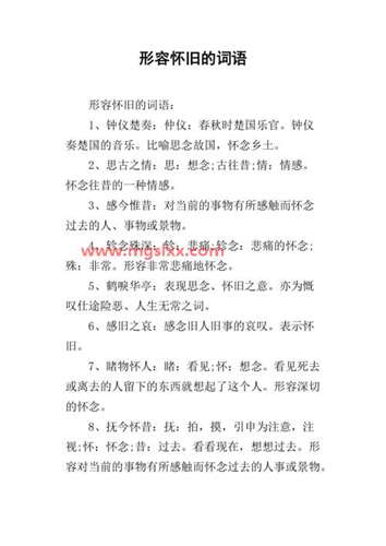感旧之哀 ,释义:感念旧人旧事的哀叹。表示怀旧。