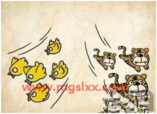 作鸟兽散 ,释义:一群人慌张而狼狈地四散逃开。