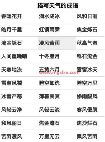 凄风苦雨 ,释义:形容天气恶劣。《左传·昭公四年》:“春无凄风,秋无苦雨。” 也比喻景象或处境非常悲惨凄凉。凄风:寒冷的风。苦雨:久下成灾的雨。