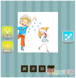 看图猜成语男孩手挥着汗和女孩打着伞答案是什么大家知道吗?今天小编为大家带来了一篇看图猜成语男孩手挥着汗和女孩打着伞答案及成语解释供大家参考,希望可以帮助各位玩家顺利通关看图猜成语这款游戏。