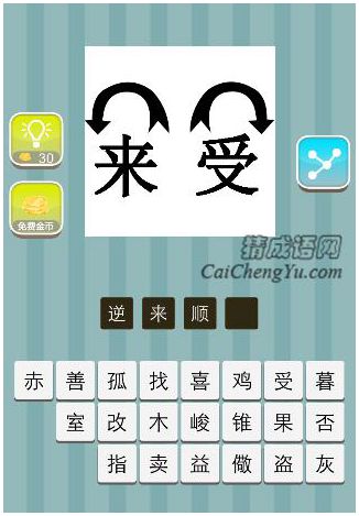 来字和受字上面各一个箭头是什么成语2020-11-18 21:06:52 阅读 83 次 评论 0 条摘要:看图猜成语中,来字和受字上面各一个箭头是什么成语谜底答案:逆来顺受繁体:逆來順受【成语解释】指对恶劣...看图猜成语中,来字和受字上面各一个箭头是什么成语谜底答案:逆来顺受繁体:逆來順受【成语解释】指对恶劣的环境或无礼的待遇采取顺从和忍受的态度。【成语出处】明·周楫《西湖二集·侠女散财殉节》:“若是一个略略知趣的,见家主来光顾,也便逆来顺受。”【例子】从前受了主人的骂,无非~。 ★清·吴趼人《二十年目睹之怪现状》第九十三回本文地址:https://www.suduxx.com/ktccy/MYGAdJr.html版权声明:本文收录于网络,如有侵权请E-mail联系 www.suduxx.com 站长!点赞 1分享:PREVIOUS:一只脚踏在天字上面是什么成语NEXT:上下两堵墙 中间一个干字是什么成语文章导航