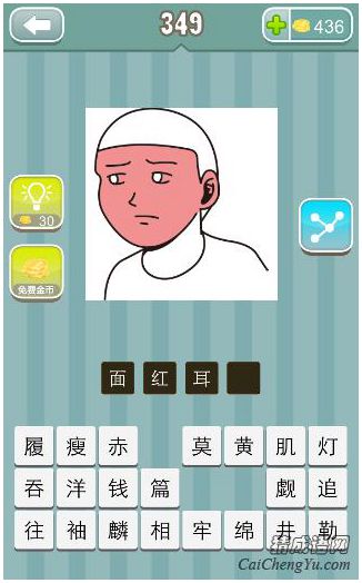 看图猜成语、看图猜成语第349关图片中,一个人脸红红的,答案是什么成语?