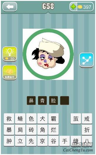 看图猜成语、看图猜成语图片中,一个人鼻青脸肿的流着鼻血都是紫伤,外面是一个圆圈,答案是什么成语?