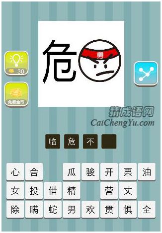 危字 头上一个勇是什么成语2020-11-18 20:43:14 阅读 96 次 评论 0 条摘要:看图猜成语中,危字 头上一个勇是什么成语谜底答案:临危不惧繁体:臨危不懼【成语解释】临:遇到;危:危...看图猜成语中,危字 头上一个勇是什么成语谜底答案:临危不惧繁体:臨危不懼【成语解释】临:遇到;危:危险;惧:怕。遇到危难的时候,一点也不怕。【成语出处】《邓析子·无厚》:“死生自命,贫富贱者,不知时也,故临难不惧。”【例子】本文地址:https://www.suduxx.com/ktccy/MYluRQc.html版权声明:本文收录于网络,如有侵权请E-mail联系 www.suduxx.com 站长! 点赞 1分享:PREVIOUS:一只眼睛 死=归是什么成语NEXT:名往山下掉 孙字是什么成语文章导航