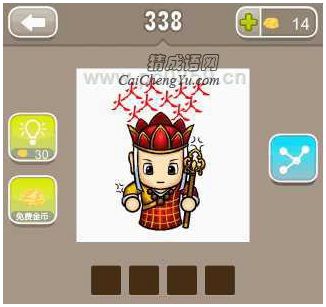 唐僧、很多大字是什么成语?2020-11-18 18:57:23 阅读 71 次 评论 0 条摘要:看图猜成语、成语玩命猜、看图猜成语唐僧、很多大字是什么成语?很多玩家对这个谜语,下面为大家解析答案;...看图猜成语、成语玩命猜、看图猜成语唐僧、很多大字是什么成语?很多玩家对这个谜语,下面为大家解析答案;看图猜成语图片寓意一 般为3个方面,第一种图片中的文字就是成语的答案,第二种图片就是答案;第三 种图片和文字组合成的答案。成语答案:火冒三丈【拼音】:huǒ mào sān zhàng【解释】:冒:往上升。形容愤怒到极点。【出自】:陶菊隐《筹安会六君子传》:“章太炎以自己惨淡经营《民报》多年,一旦复刑,竟被摈斥,不由得火冒三丈。”【猜图提示】: 唐僧 大字本文地址:https://www.suduxx.com/ktccy/MYwLxQ6.html版权声明:本文收录于网络,如有侵权请E-mail联系 www.suduxx.com 站长! 点赞 1分享:PREVIOUS:地上很多旗帜,只有一面旗帜站立着答案是什么?NEXT:2第六关雾打一成语是什么文章导航