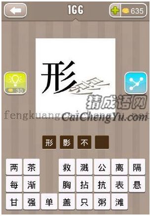 一个形字,一个影字斜着的答案是什么成语2020-11-18 20:28:15 阅读 118 次 评论 0 条摘要:一个形字,一个影字斜着,猜一个成语答案是什么? 答案:形影不离 像形体和它的影子那样分不开,像自己... 一个形字,一个影字斜着,猜一个成语答案是什么? 答案:形影不离 像形体和它的影子那样分不开,像自己的影子一样紧紧地跟着。形容彼此关系亲密,像自己的影子一样紧紧地跟着,经常在一起。形:身体。影:身体的影子。近义词:如影随形、难舍难分、寸步不离、难舍难弃 本文地址:https://www.suduxx.com/ktccy/MYwOECw.html版权声明:本文收录于网络,如有侵权请E-mail联系 www.suduxx.com 站长! 点赞 1分享:PREVIOUS:一羽月土米水日古余的答案是什么成语NEXT:汉张韩铁吕曹蓝何的答案是什么成语文章导航