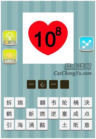 心里面10的八次方是什么成语2020-11-18 20:59:16 阅读 40 次 评论 0 条摘要:看图猜成语中,心里面10的八次方是什么成语谜底答案:一心一意繁体:一心一意【成语解释】只有一个心眼儿...看图猜成语中,心里面10的八次方是什么成语谜底答案:一心一意繁体:一心一意【成语解释】只有一个心眼儿,没有别的考虑。【成语出处】《三国志·魏志·杜恕传》:“免为庶人,徙章武郡,是岁嘉平元年。”裴松之注引《杜氏新书》:“故推一心,任一意,直而行之耳。”【例子】所以彭官保便~的料理防守事宜,庄制军便~料理军需器械。 ★清·张春帆《宦海》第四回本文地址:https://www.suduxx.com/ktccy/MYx7r6E.html版权声明:本文收录于网络,如有侵权请E-mail联系 www.suduxx.com 站长! 点赞 1分享:PREVIOUS:一个人背着袋东西 抓贼啊是什么成语NEXT:倒着一盆水 覆是什么成语文章导航