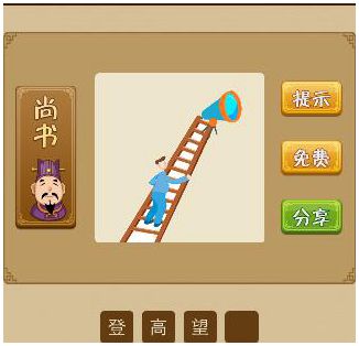 一个男人在爬梯子上面一个望远镜猜一成语2020-11-18 18:58:55 阅读 57 次 评论 0 条摘要:看图猜成语中,一个男人在爬梯子,上面一个望远镜。,打一成语的答案是什么?谜语解析: 谜底答案:登高...看图猜成语中,一个男人在爬梯子,上面一个望远镜。,打一成语的答案是什么?谜语解析:谜底答案:登高望远成语意思:登上高处,看得更远。也比喻思想境界高,目光远大。【出处】《荀子·劝学》:“我尝跂高而望矣,不如登高之博见也。”《吕氏春秋·顺说》:“顺风而呼,声不加疾也,际高而望,目不加明也,所因便也。”本文地址:https://www.suduxx.com/ktccy/MYxyH4O.html版权声明:本文收录于网络,如有侵权请E-mail联系 www.suduxx.com 站长! 点赞 1分享:PREVIOUS:五线谱音符两个mi猜一成语NEXT:竹卷上写着三十六计第一计猜一成语文章导航