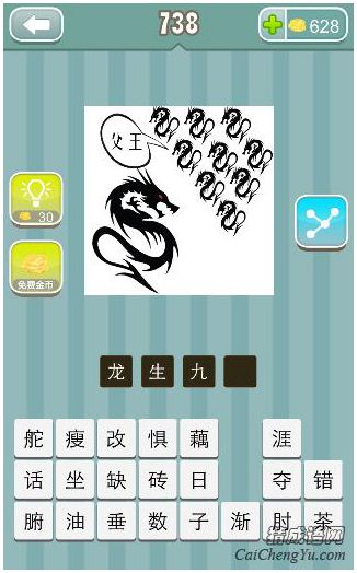 看图猜成语、看图猜成语图片中,一条大龙,九条小龙叫“父王”,答案是什么成语?